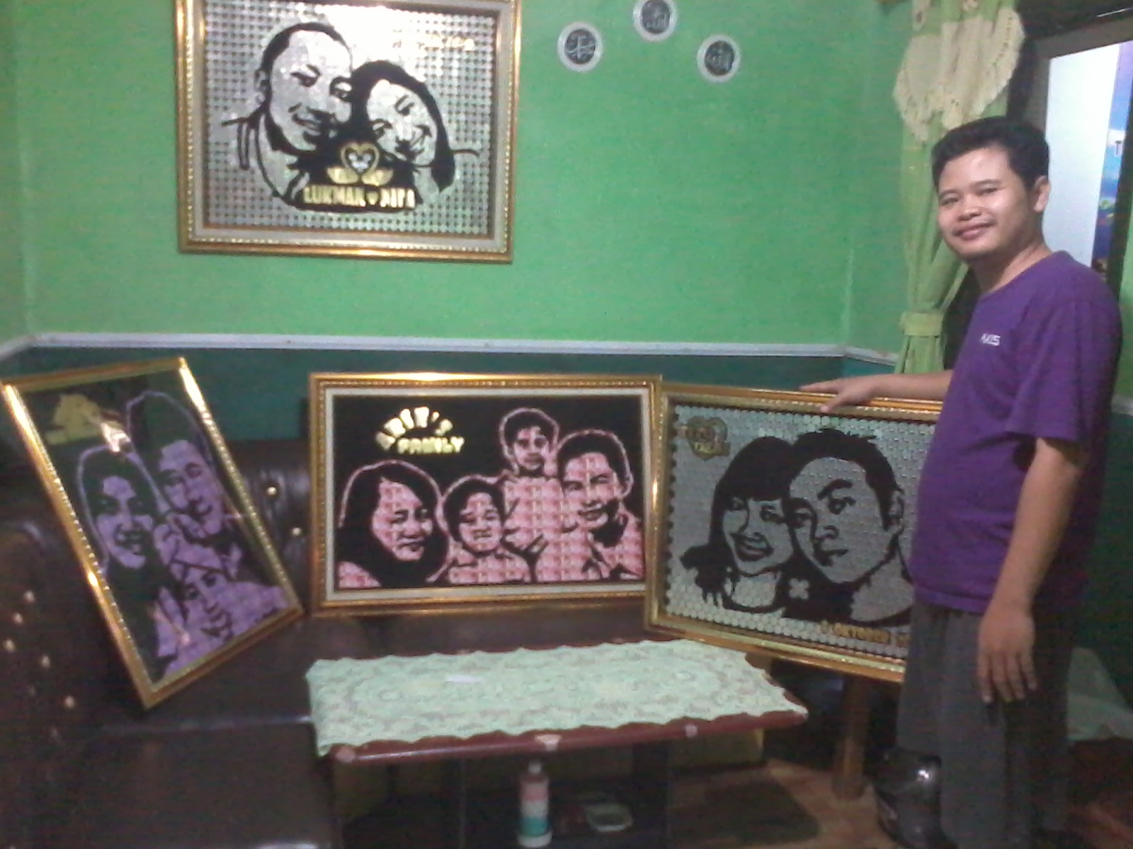 Wah, ini foto lama... hehe emang sudah lama gak majang gituan. Mejeng sambil pamerin banyak karya untuk orang. Hihi, itu memang foto sudah dari beberapa taon yang lalu. Waktu garap pesanan orang dengan paket full. Dirancang sekaligus dirakitkan sampai pigura. Hmmm.. jadi penuh sesak ruang tamu orang tua.